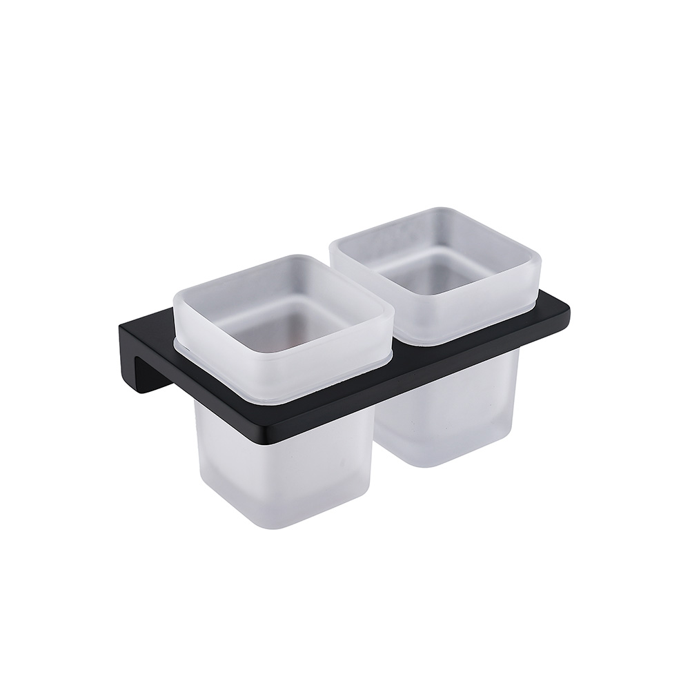 Настенный стеклянный двойной стакан, матовый черный 9504