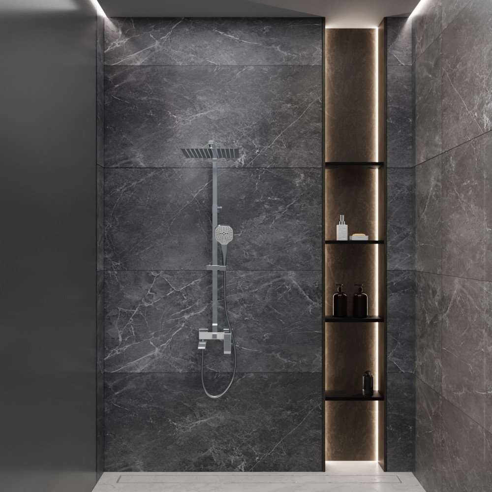 - Держатель душевой лейки регулируется по высоте