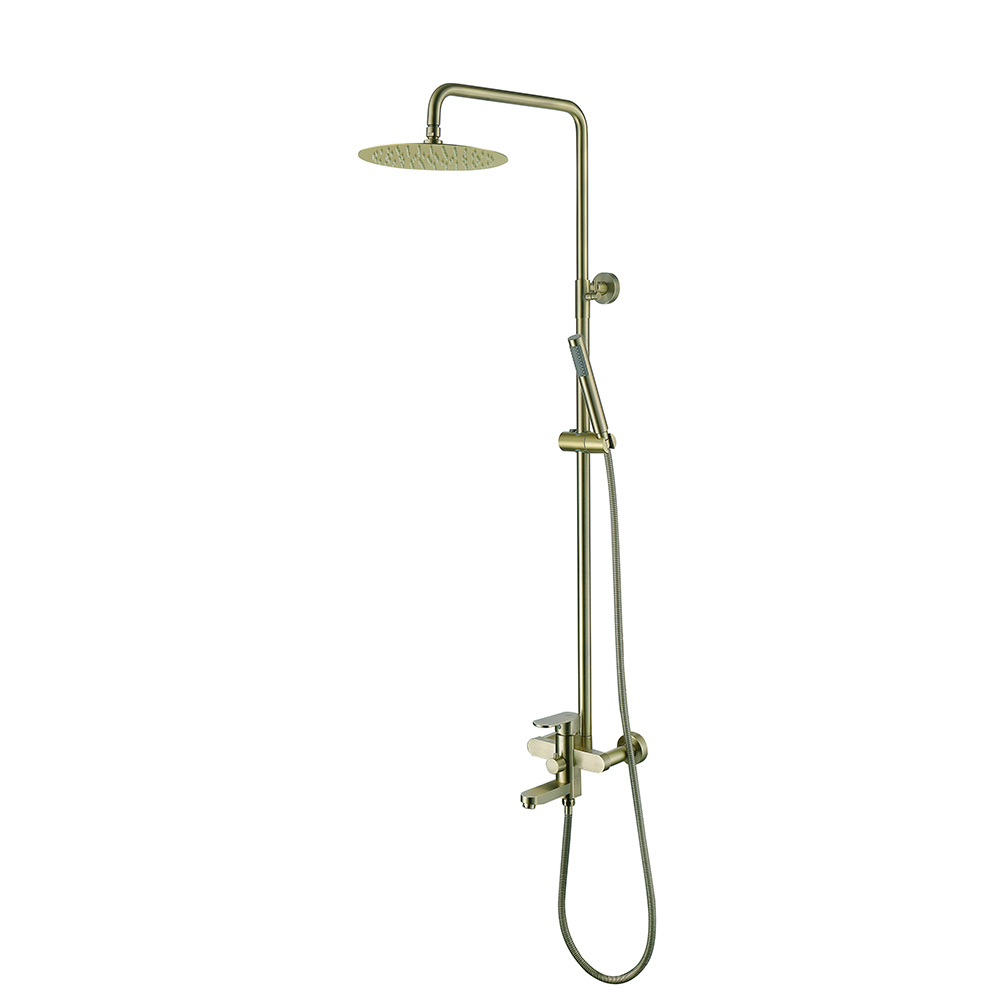 - Состав: смеситель, душевая штанга, верхний душ, душевая лейка, держатель, шланг