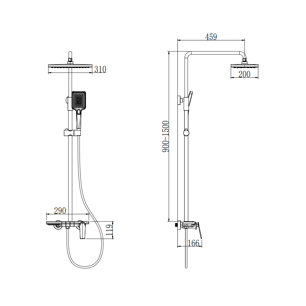 - Верхний душ 310x200 мм, 1 режим