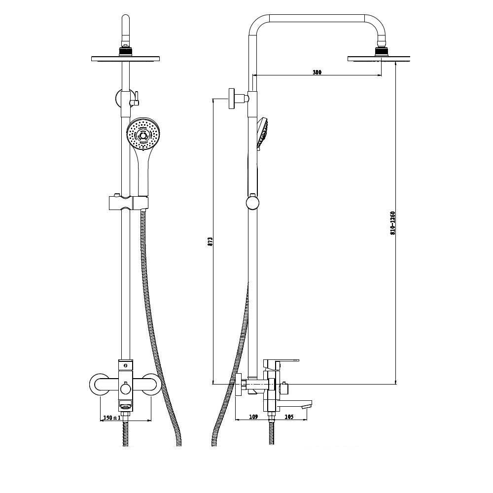Душевая система для ванны со смесителем, хром 5005