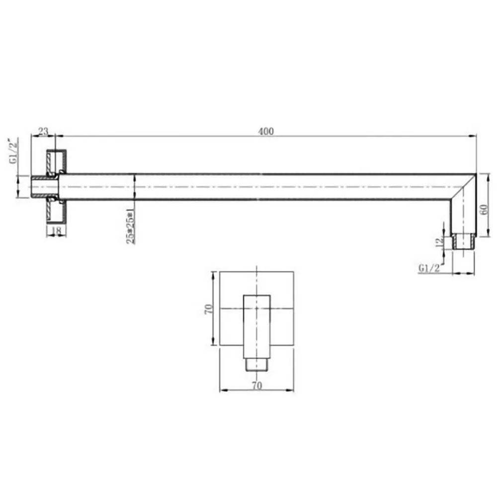 Настенный душевой кронштейн 400 мм,хром 9008