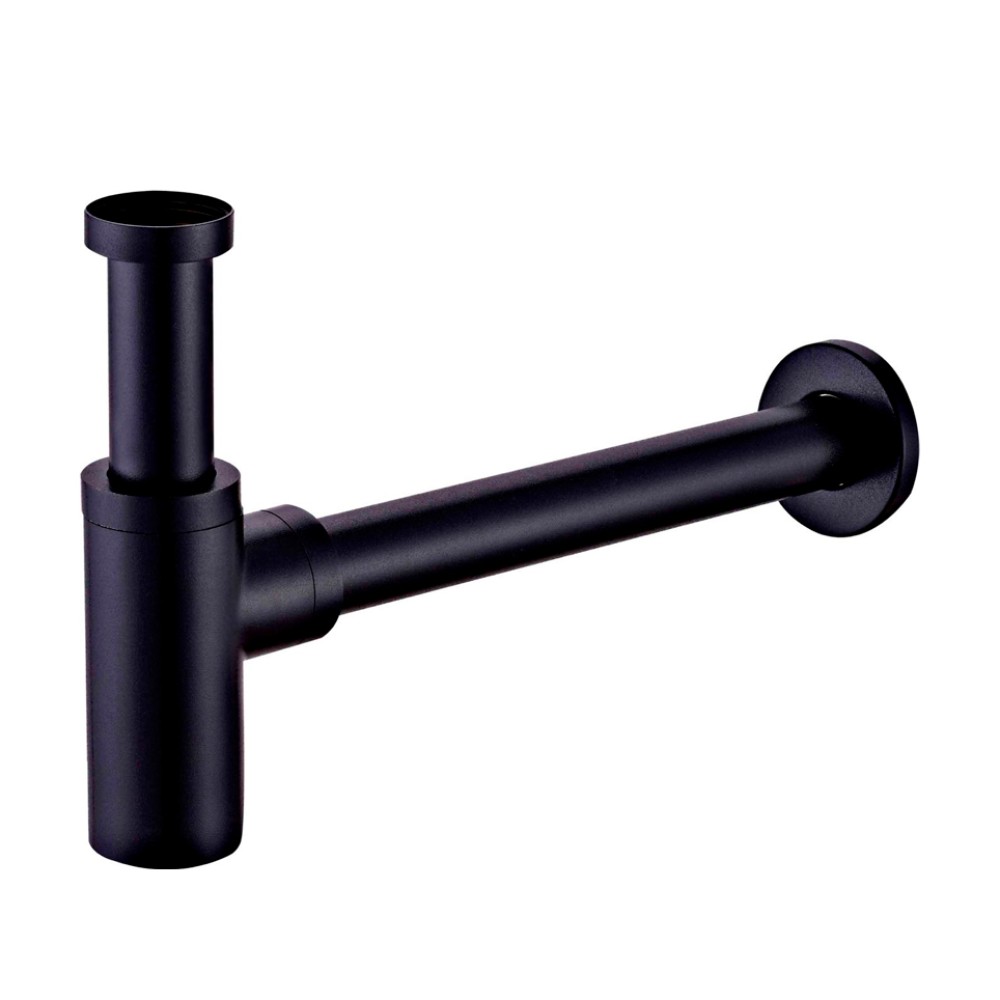 Сифон для раковины круглый, матовый черный A-9010