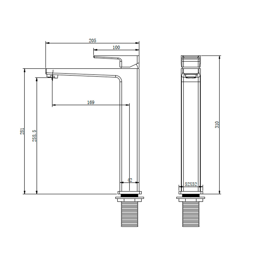 - Длина излива 169 мм