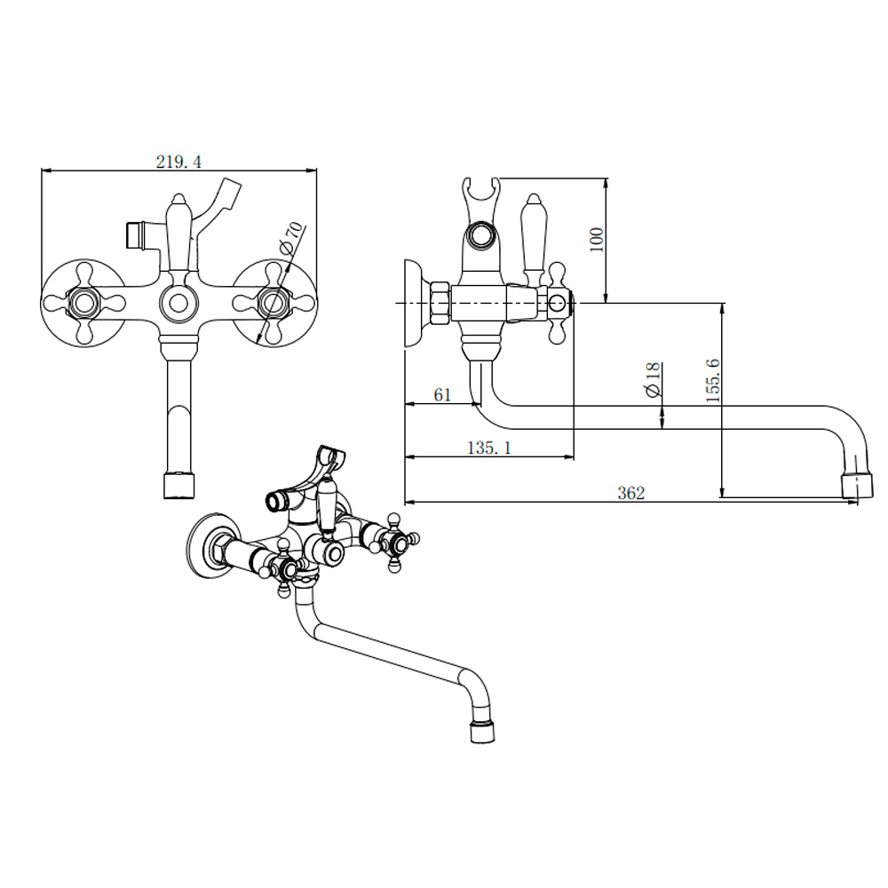 Смеситель для ванны, хром RETRO 3033